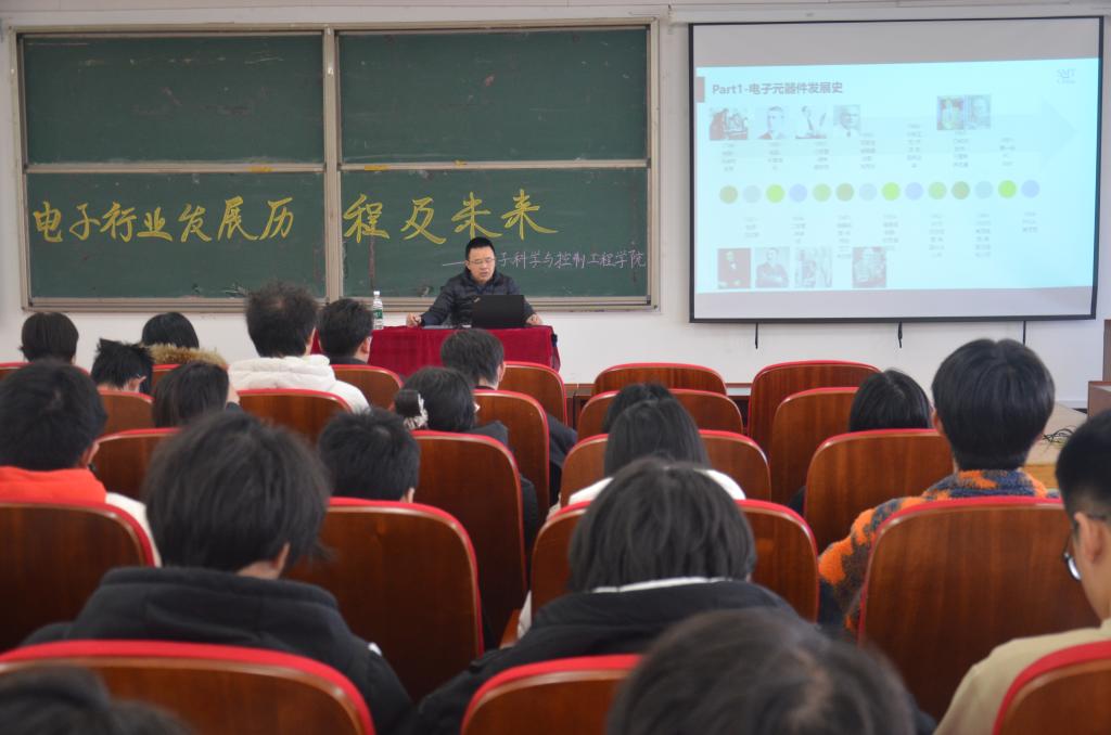 12月5日,受304am永利集团官网邀请,汉王制造有限公司SMT经理、高级工程师余风胜来校作题为“电子行业发展历程及未来”的学术报告,共有300余名师生到场聆听。